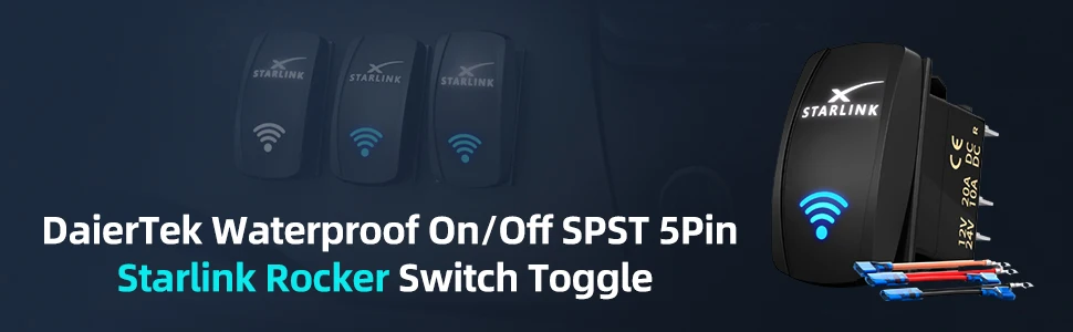 5 Pin Starlink Rocker Switch 12V 24V 20A Laser Etched ON OFF Switch with Jumper Cable for Automotive RV Use