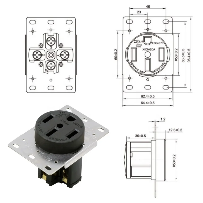 Manufacturer 125V 250V 50A Nema 14-50R female receptacle wall socket |