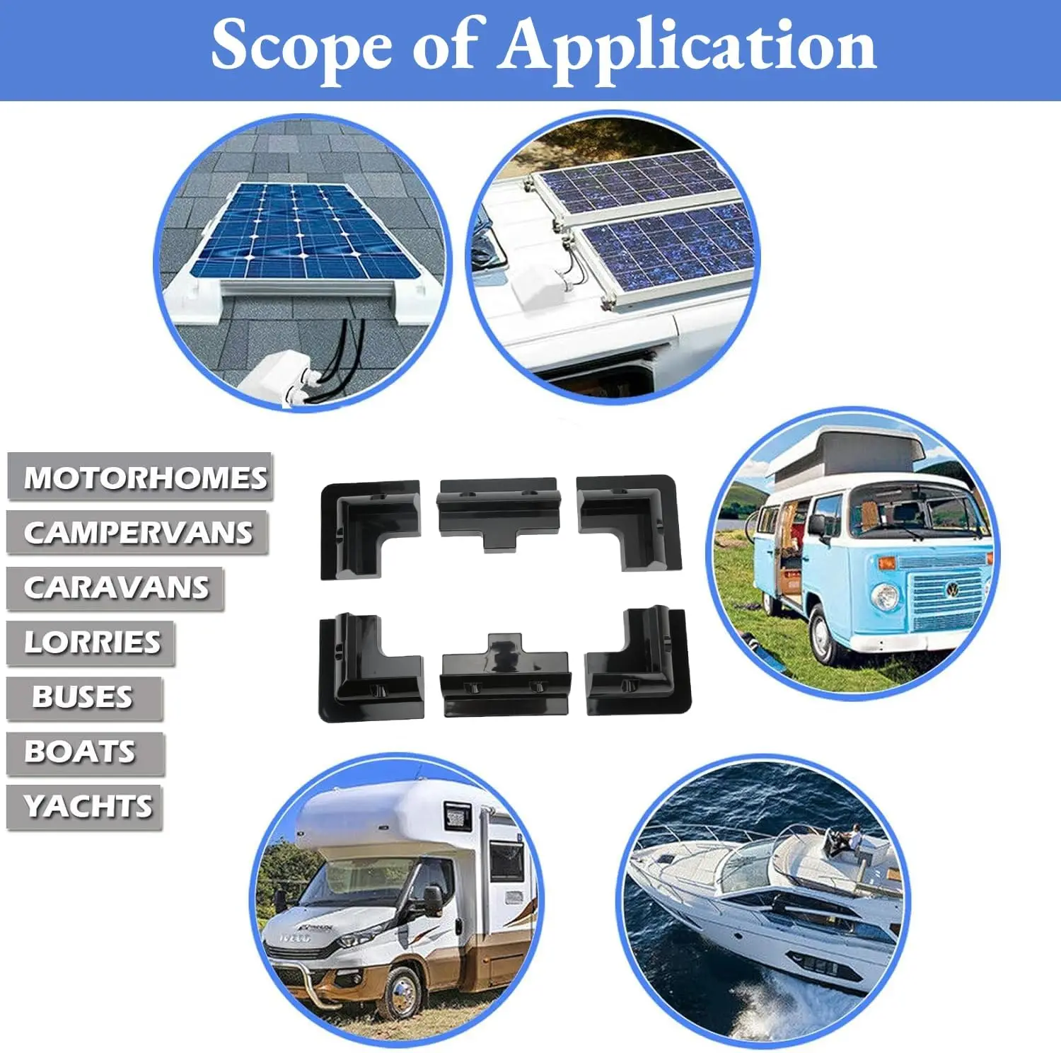 6pcs ABS Solar Panel Mounting Brackets Drill-Free Corner Bracket Kit for RV Boats Caravans Camper Trailers Vans Sheds