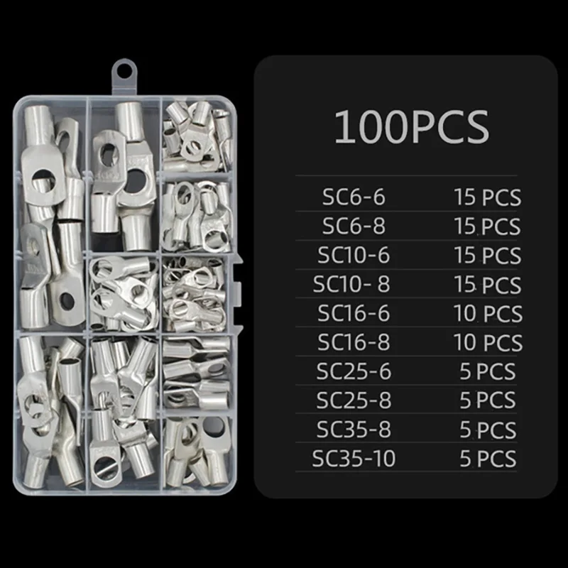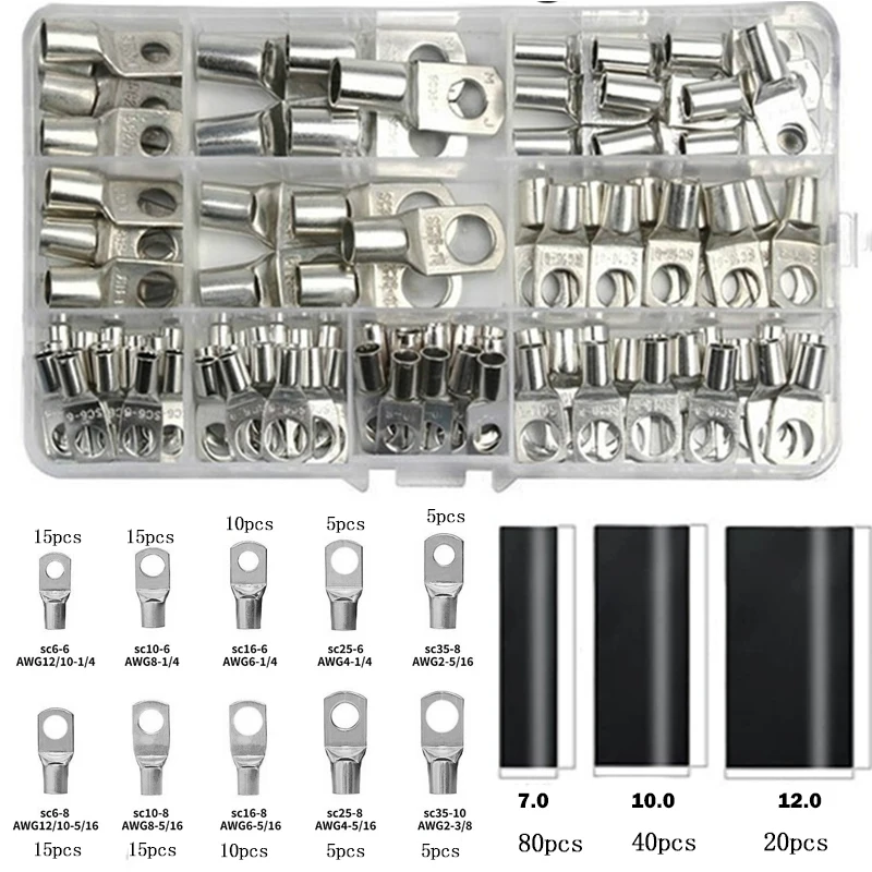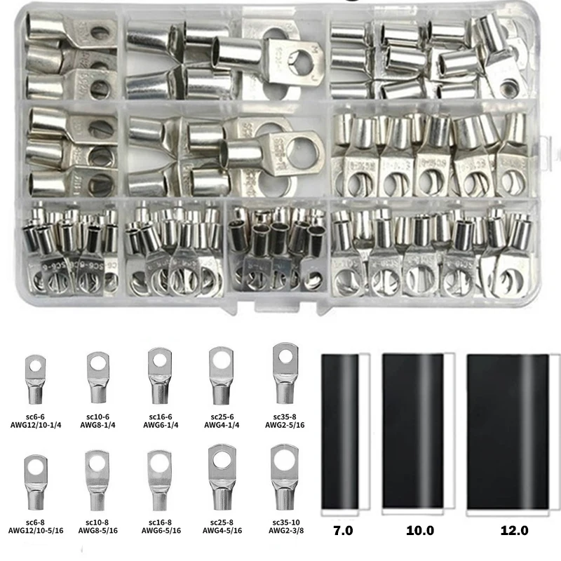 70/240PCS Ring Terminal Cable Shoes Lugs 35mm2 Tinned Copper Lug Wire Eye Connectors Bare 60 Terminals Lugs Wire Copper Kit