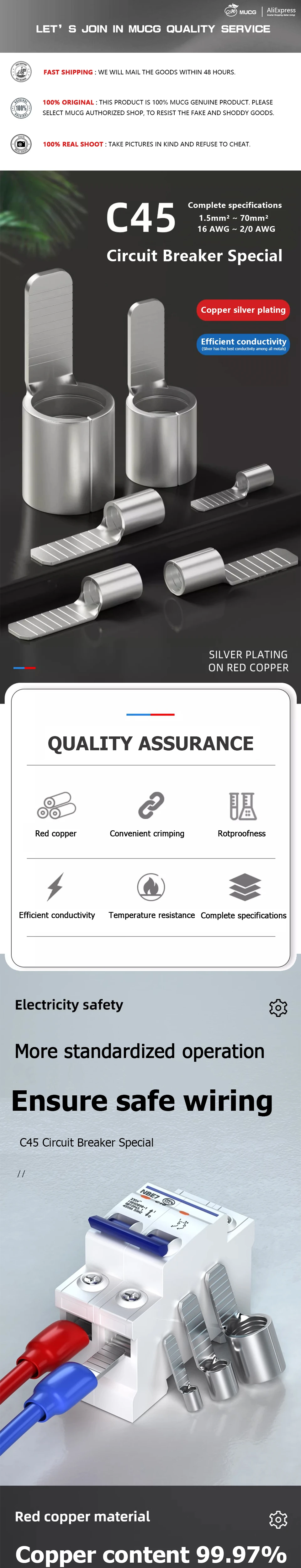 Circuit Breaker plug Pin-Shaped Cable Wire Lug Insert Crimp Terminal C45 Air Switch Lug C45 - 16 14 12 10 8 6 4 2 1 2/0 AWG