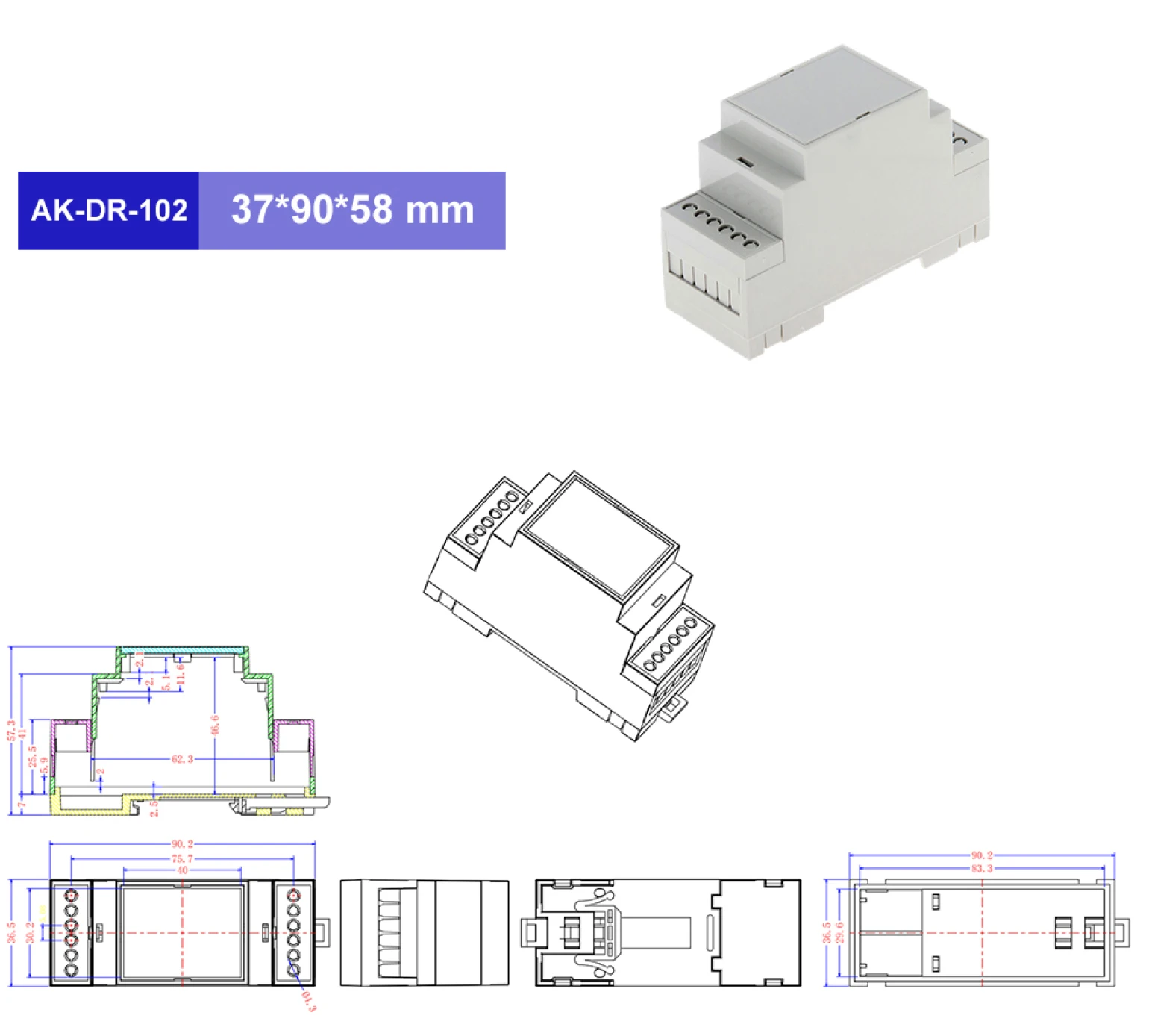 Din-Rail Box PC Enclosure Electrical PCB Mount Bracket Plastic Enclosure Plc Connector Terminal Block Din Rail Enclosure