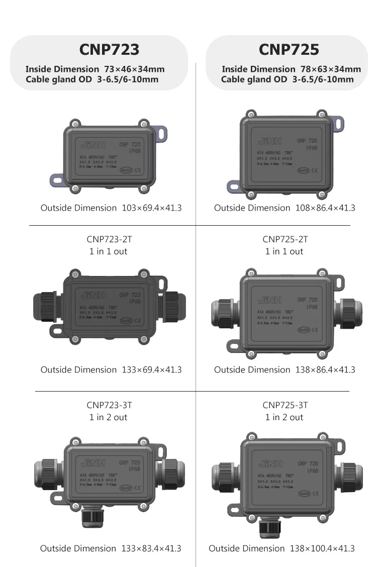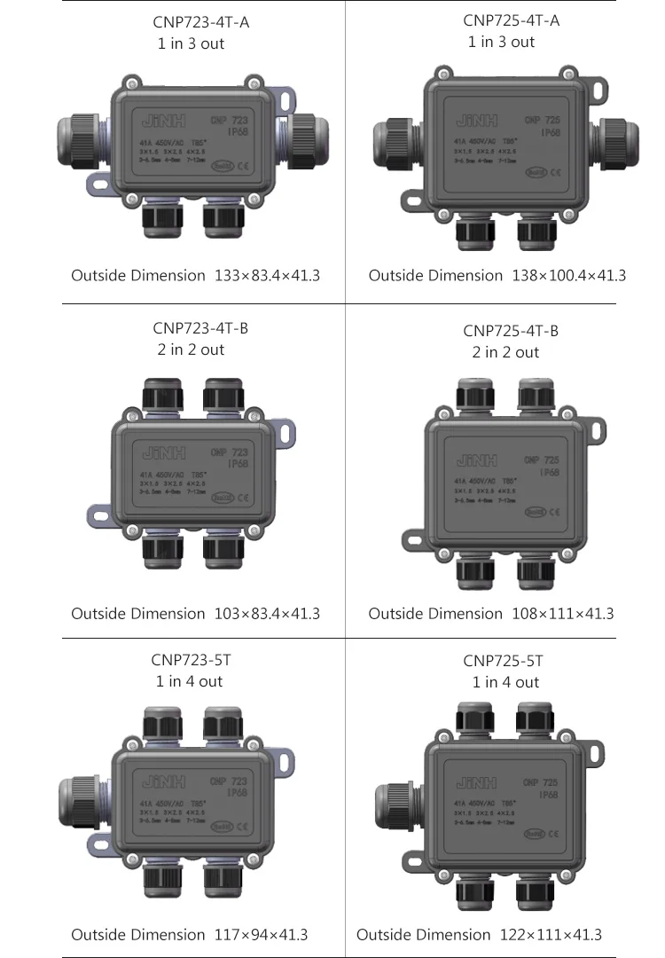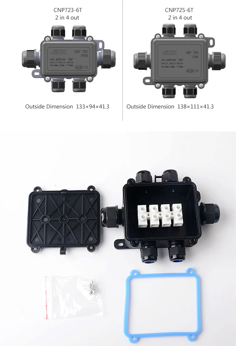 JINH CNP725 IP68 Waterproof External Junction Box Rainproof Connector 2 3 4 5 6 Way Wiring Terminal Blocks Outdoor Universal