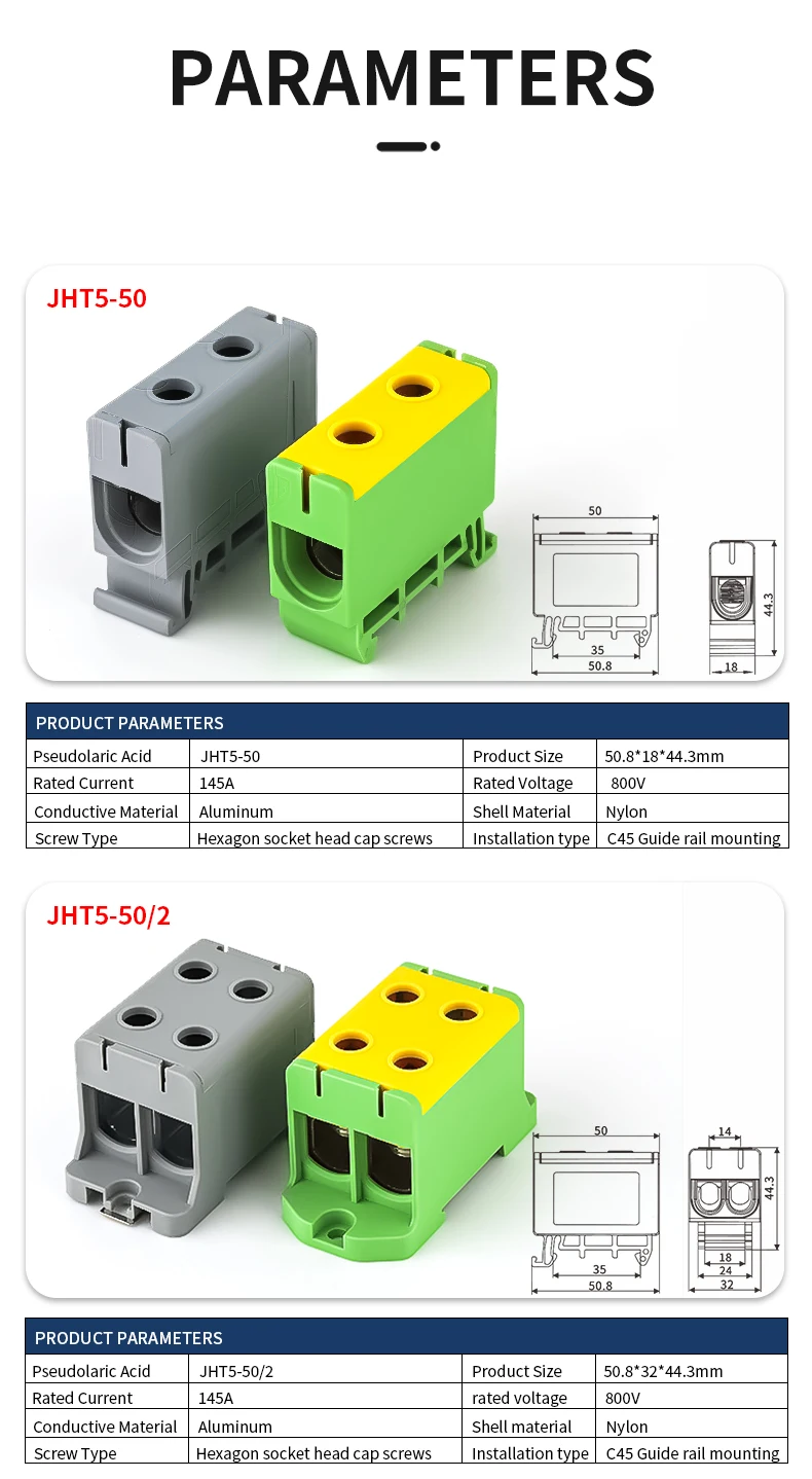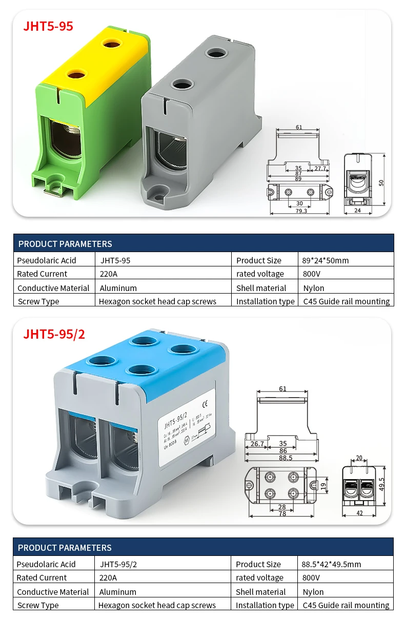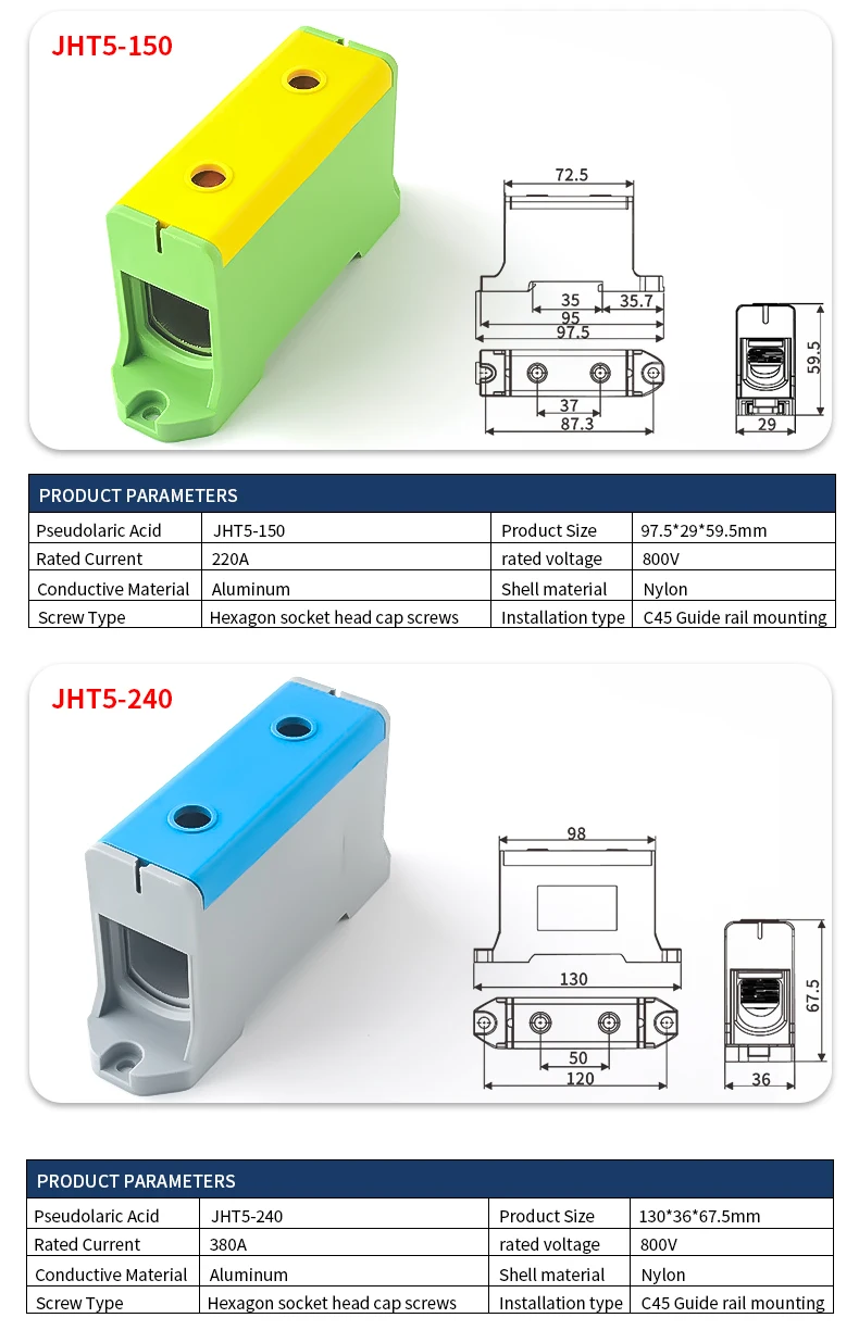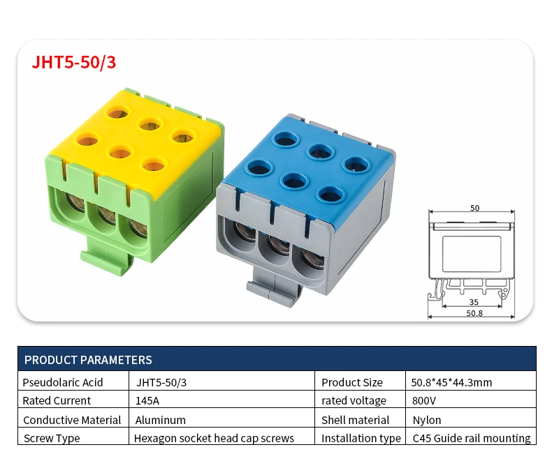 JINH JHT5 16mm² Aluminum Distribution Block Din Rail Cable 1 in Multiple Out Universal Connector Terminal Block Box
