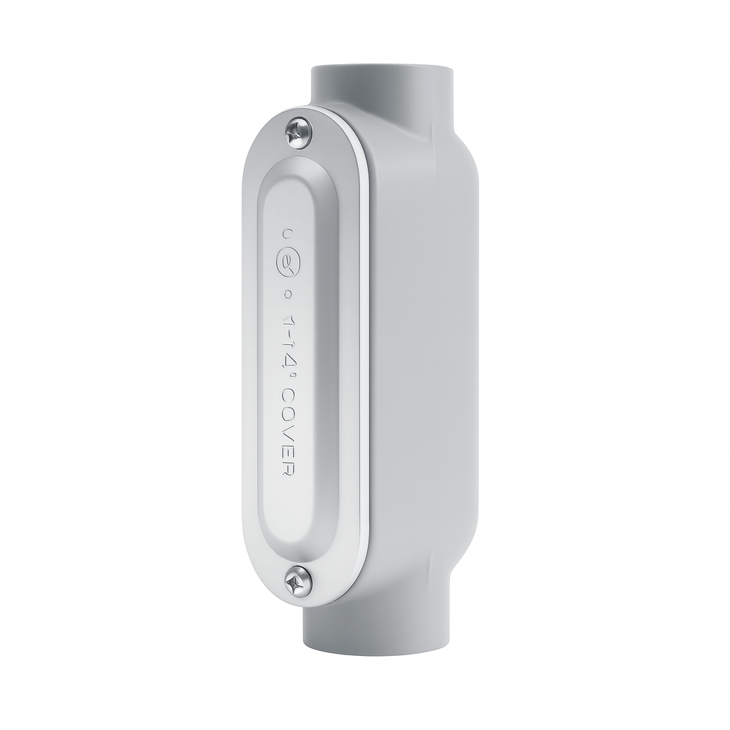 C-Type refers to an inline conduit body that connects two straight conduit sections and provides a service opening for pulling and inspection.
