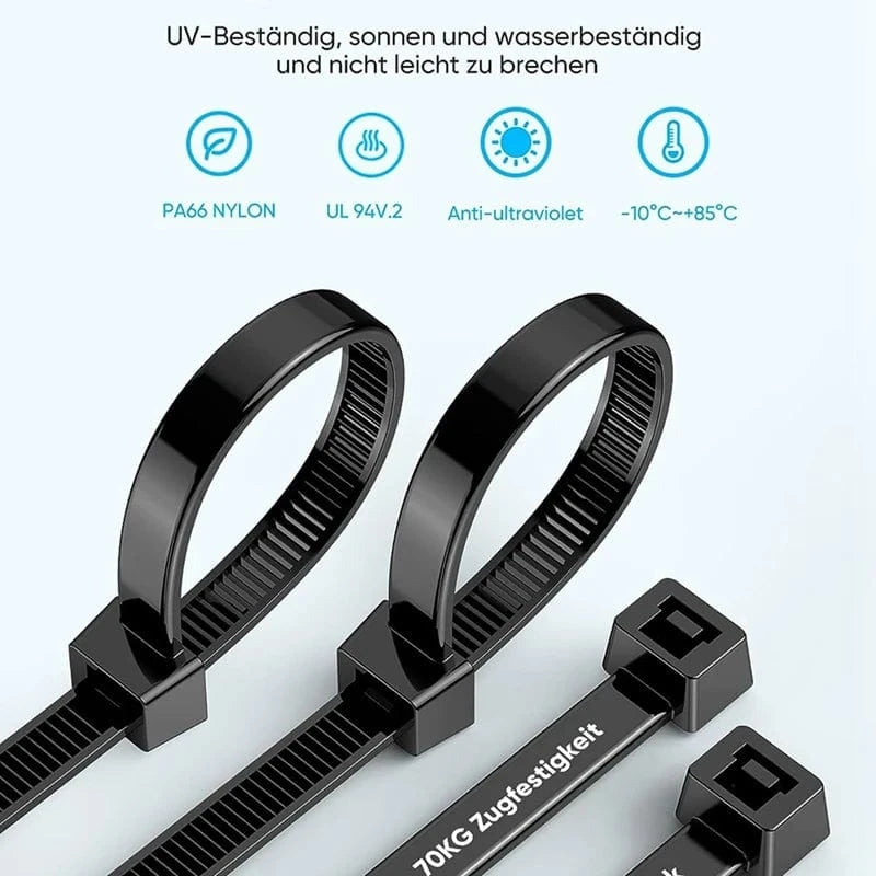 [Self locking design strap] The black strap has a self-locking mechanism for easy operation. Simply insert the curved tip into the head, the smooth edge can quickly and evenly shrink, and the locking teeth can fix the tie at the desired length. The self-locking mechanism of the tie is very reliable, with strong locking force and difficulty in loosening The maximum tensile strength of nylon ties (300mm x 7.6mm) can reach 70KG. The tensile strength is determined by the width. Our black tie is widened (0.3 inches/7.6mm), combined with high-quality materials, and has a higher tensile strength than other smaller tie widths The black tie is made of sturdy modified nylon 66 material, which is very sturdy. The tie has cold resistance and heat resistance, with a working temperature of -25°C to+85°C. The tie is not only weather resistant, but also UV resistant, suitable for outdoor use. UV resistant straps are durable and ensure perfect fixation of items for extended periods of time, even under extreme conditions Indoor and outdoor ties: UV resistant ties can be used indoors or outdoors, suitable for homes, gardens, offices, garages, workshops, factories, sheds, etc. Black tie is the perfect organizer for your life and work [Quality Assurance] You can obtain: 100 sturdy black ties. Size: 300mm x 7.6mm high-quality tie bracket is handmade to help you quickly organize and stabilize items. Colour:Black Material:nylon Size:7.6x300mm Package Contents: 100 * Cable Zip Only the above package content, other products are not included. Note: Light reflection and different displays may cause the color of the item in the picture a little different from the real thing. The measurement allowed error is +/- 1-3cm.