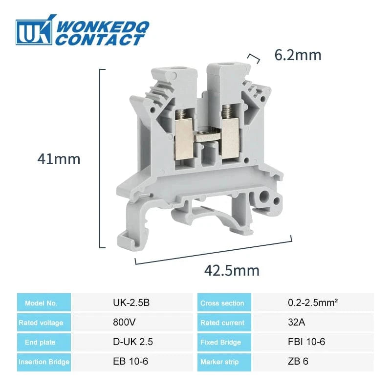 10Pcs UK 2.5 Terminal Block UK2.5B Screw Connection Connect Strip 2.5B 2.5mm² Cable Electrical Din Rail Wire Connector
