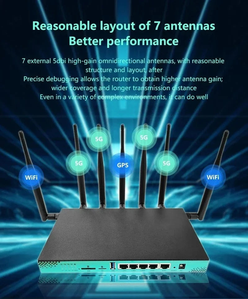 1200Mbps 5G Router SIM M.2 Slot Wireless WIFI 2.4GHz 5GHz 4g 5g RM520N-GL Modem 4*RJ45 LAN 16MB 256MB Openwrt Detachable Antenna