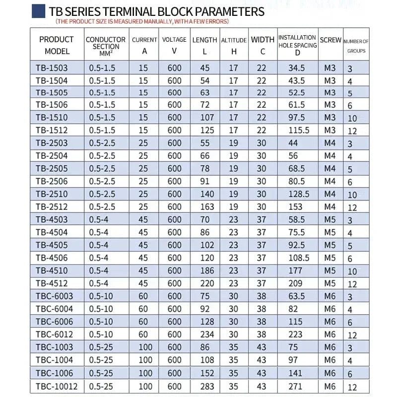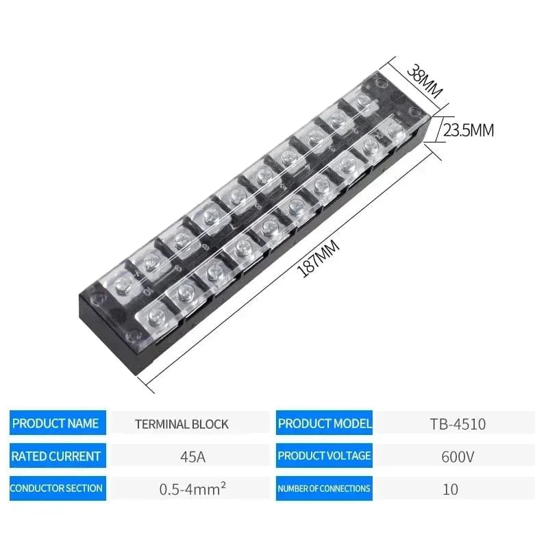 15A/25A/45A 600V Dual Row Barrier Screw Terminal Block Wire Connector TB Series 3/4/5/6/8/10/12 PIN Optional TB-1503 TB-2503