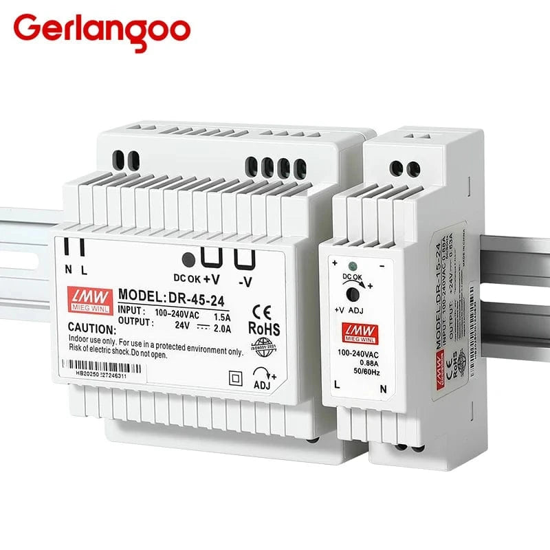 The Conversions Tech DR Series Switching Power Supplies deliver reliable, efficient DC output for industrial automation, control panels, and LED systems. Available in 15W, 30W, 45W, and 60W models, each unit features a universal 100–240 VAC input, single DC output, and compact 35 mm DIN-rail mount for fast installation. Engineered to meet CE certification standards, the DR series ensures stable performance, low ripple, and overload protection for demanding applications.