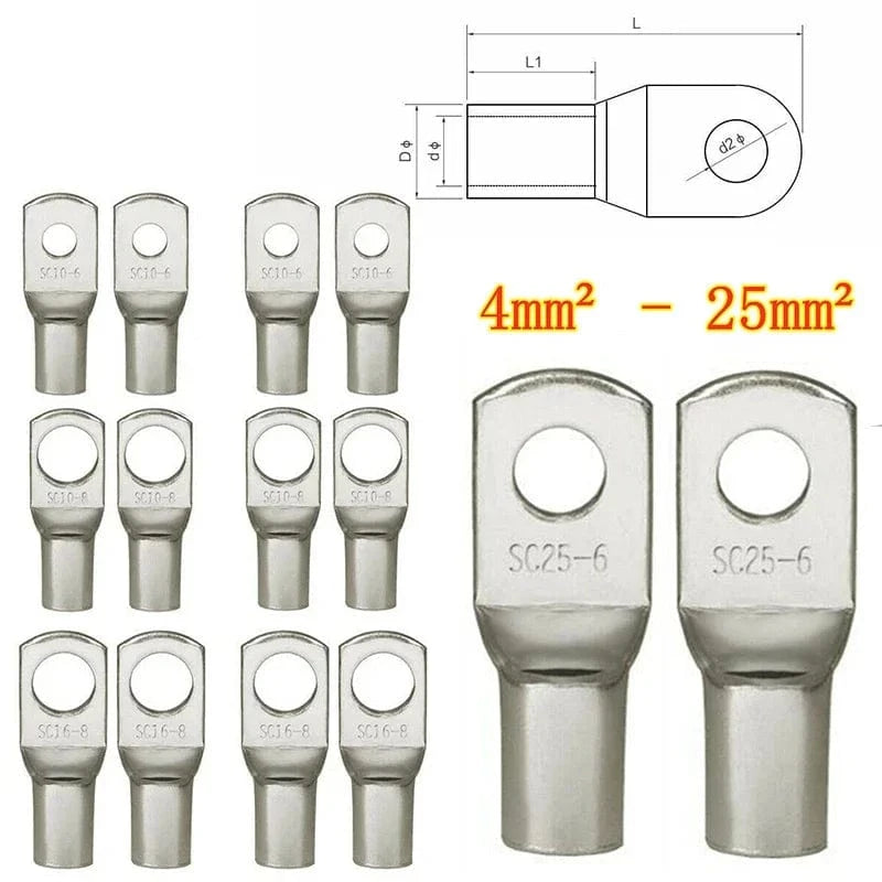 20PCS 4-25mm Assortment Tinned Copper Lugs Ring Crimp Terminals Battery Wire Welding Cable Connectors Kit