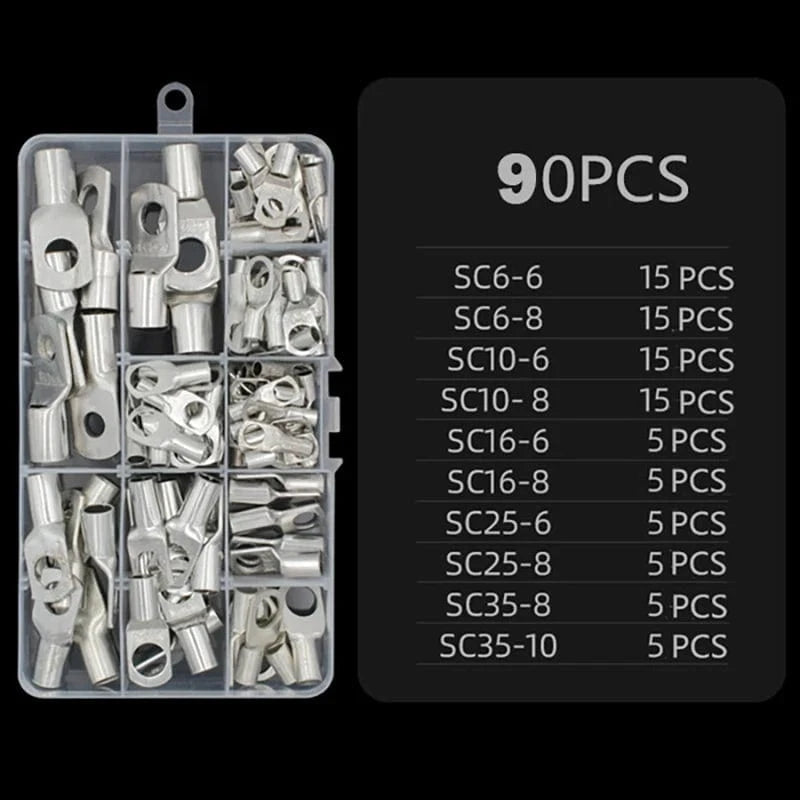70/240PCS Ring Terminal Cable Shoes Lugs 35mm2 Tinned Copper Lug Wire Eye Connectors Bare 60 Terminals Lugs Wire Copper Kit