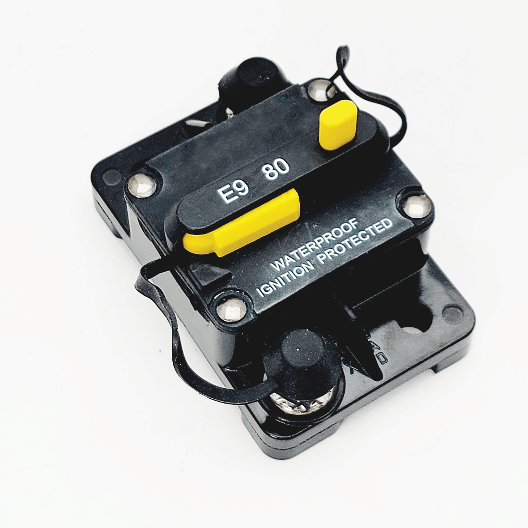80A Hi-Amp Circuit Protector (Breaker) 1/4" Stainless Steel Studs, Surface Mount, Waterproof, UL Listed, SAE Cert