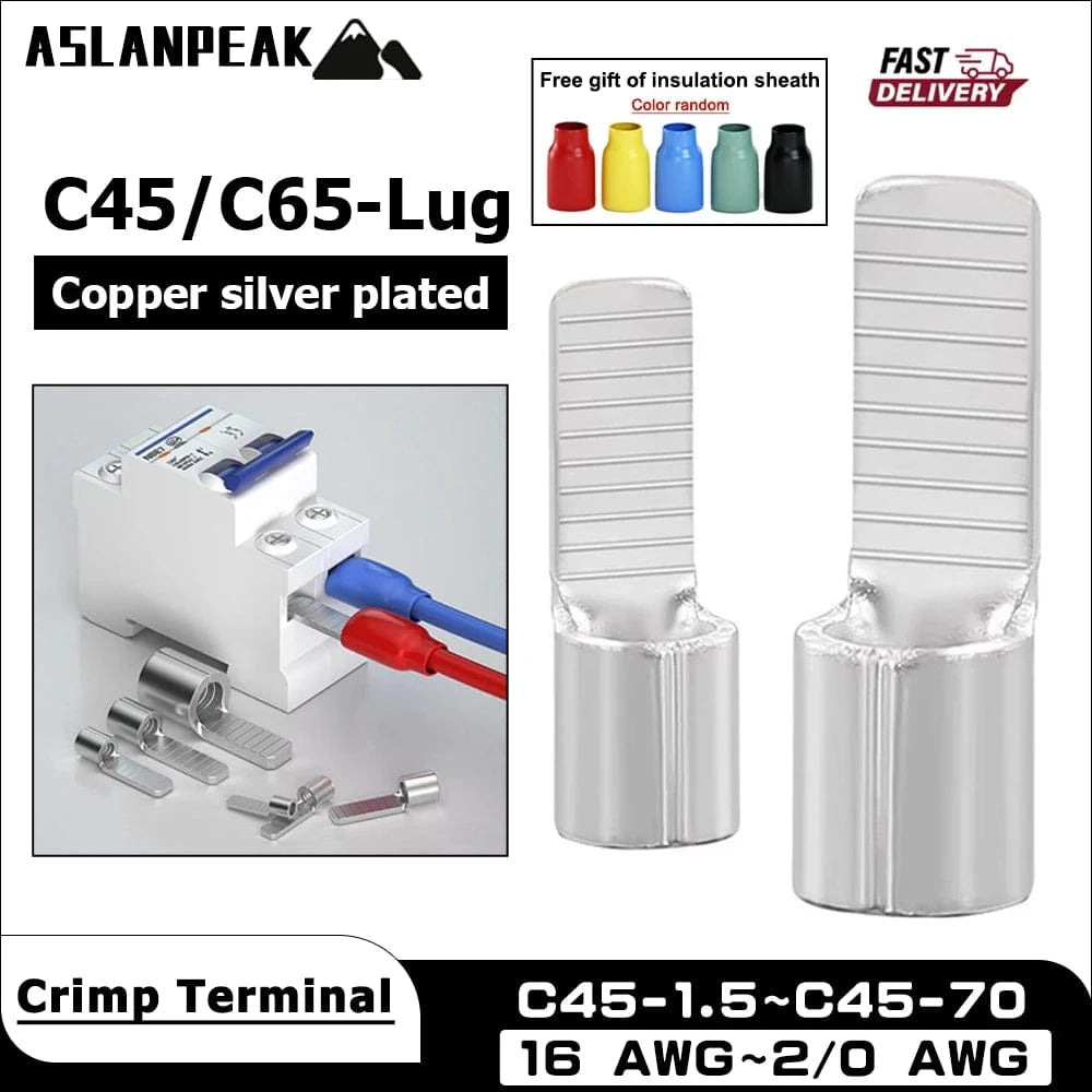 C45 Copper silver plating terminal Circuit Breaker plug Pin-Shaped Cable Wire Lug Insert Crimp Terminal C45 Air Switch Lug