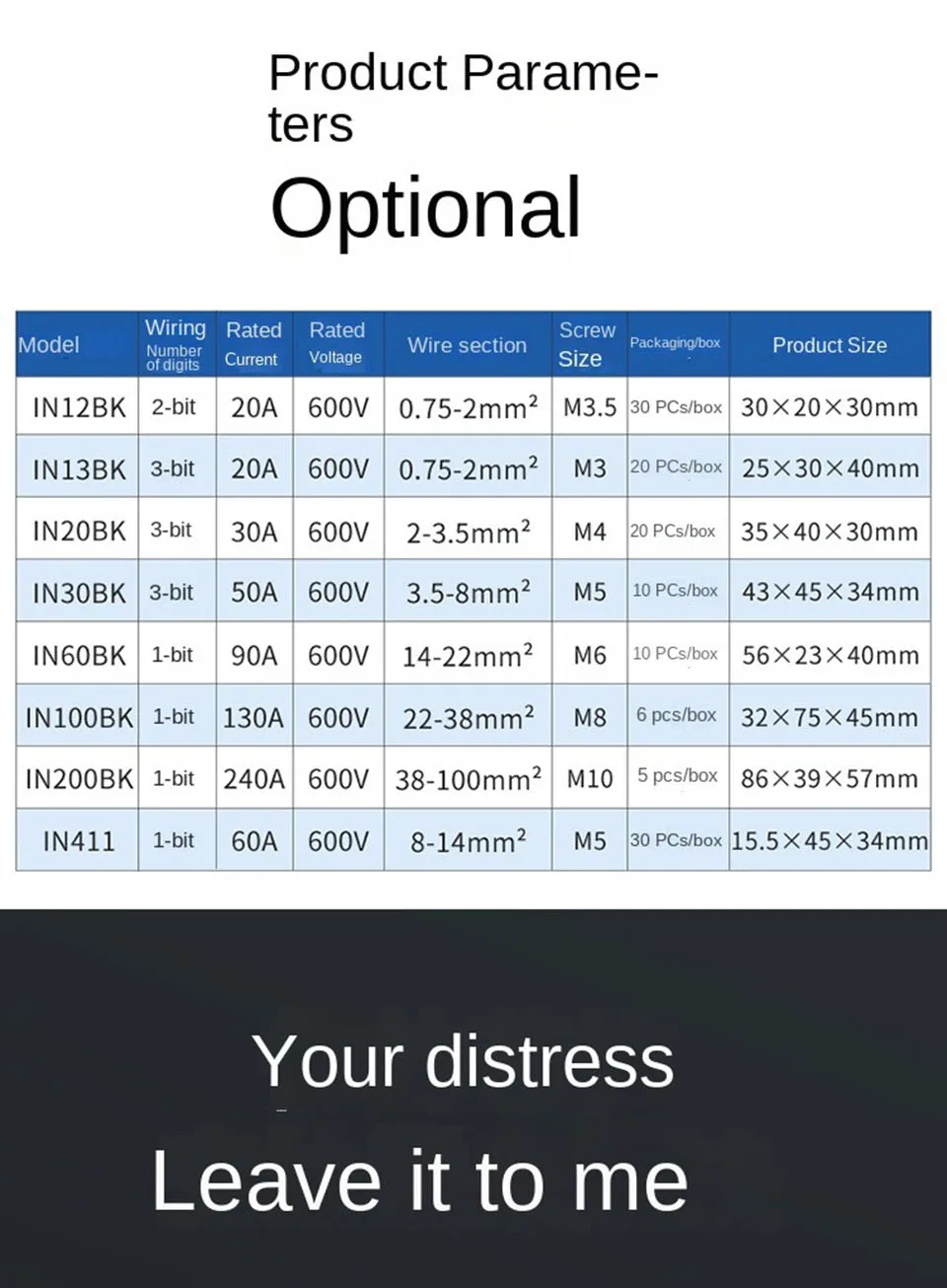 DIN Rail Terminal Block IN411S IN30BK IN12BK High power split type junction box Wire connectors Copper terminal block 600V 30A