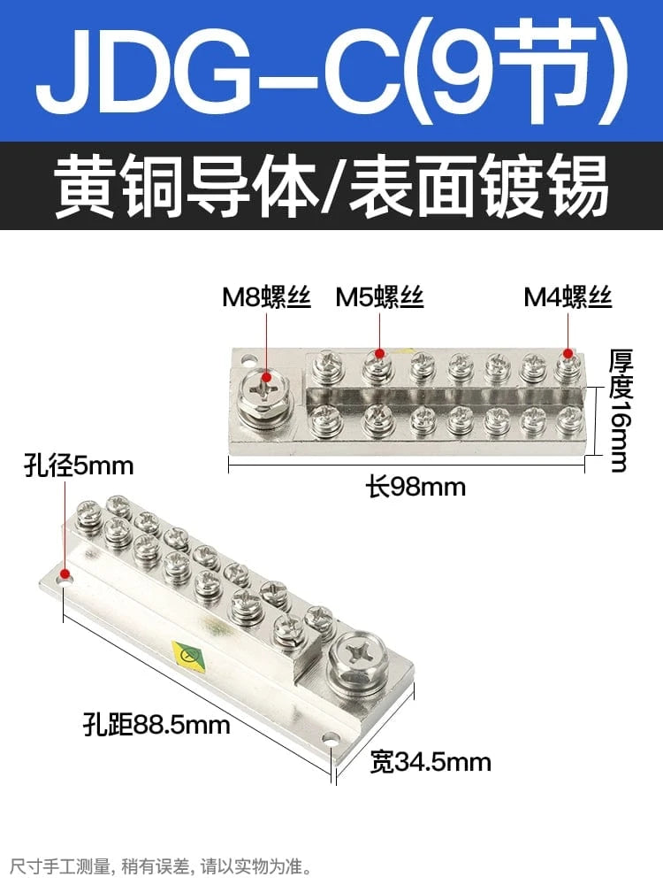 Grounding Copper Billet JDG High Current Terminal Double Layer Copper Bar Distribution Box Ground Wire Conductive Block Type a Pure Copper