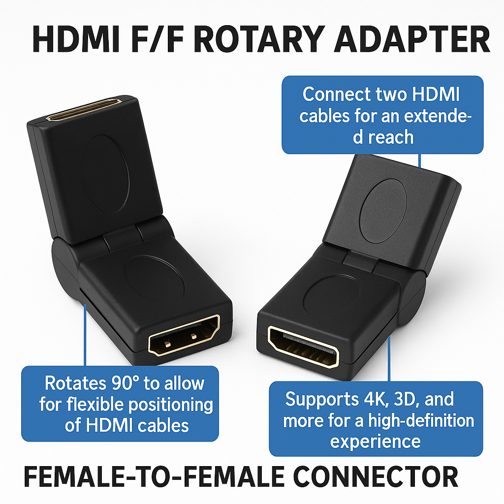 HDMI Female-to-Female Swivel (Rotary) Adapter — 0°–180° Adjustable Coupler