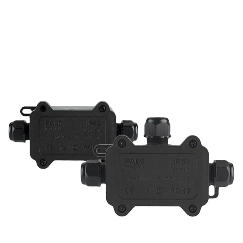 IP68 Outdoor Waterproof Junction Box – Black, 3 Way Mini Connector Box with PC Plastic and Terminal, Designed for Buried Wires