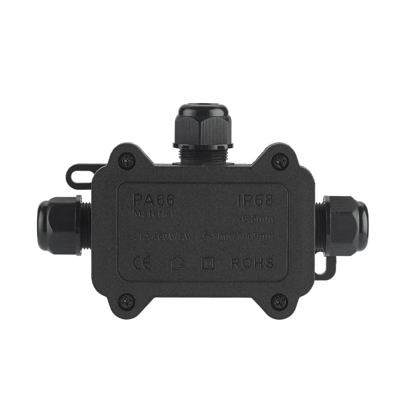 IP68 Outdoor Waterproof Junction Box – Black, 3 Way Mini Connector Box with PC Plastic and Terminal, designed for Buried Wires