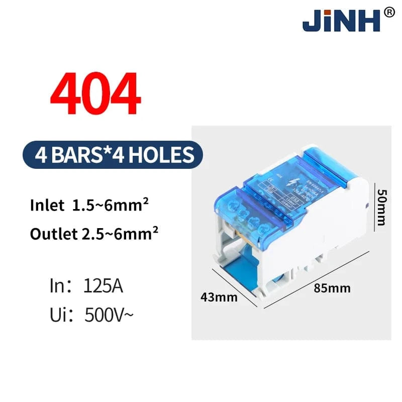 JINH JH8 Din Rail Terminal Block 207/211/215/407/411/415/2X7/4X7 Bar Distribution Block Screw Electric Wire Power Junction Box