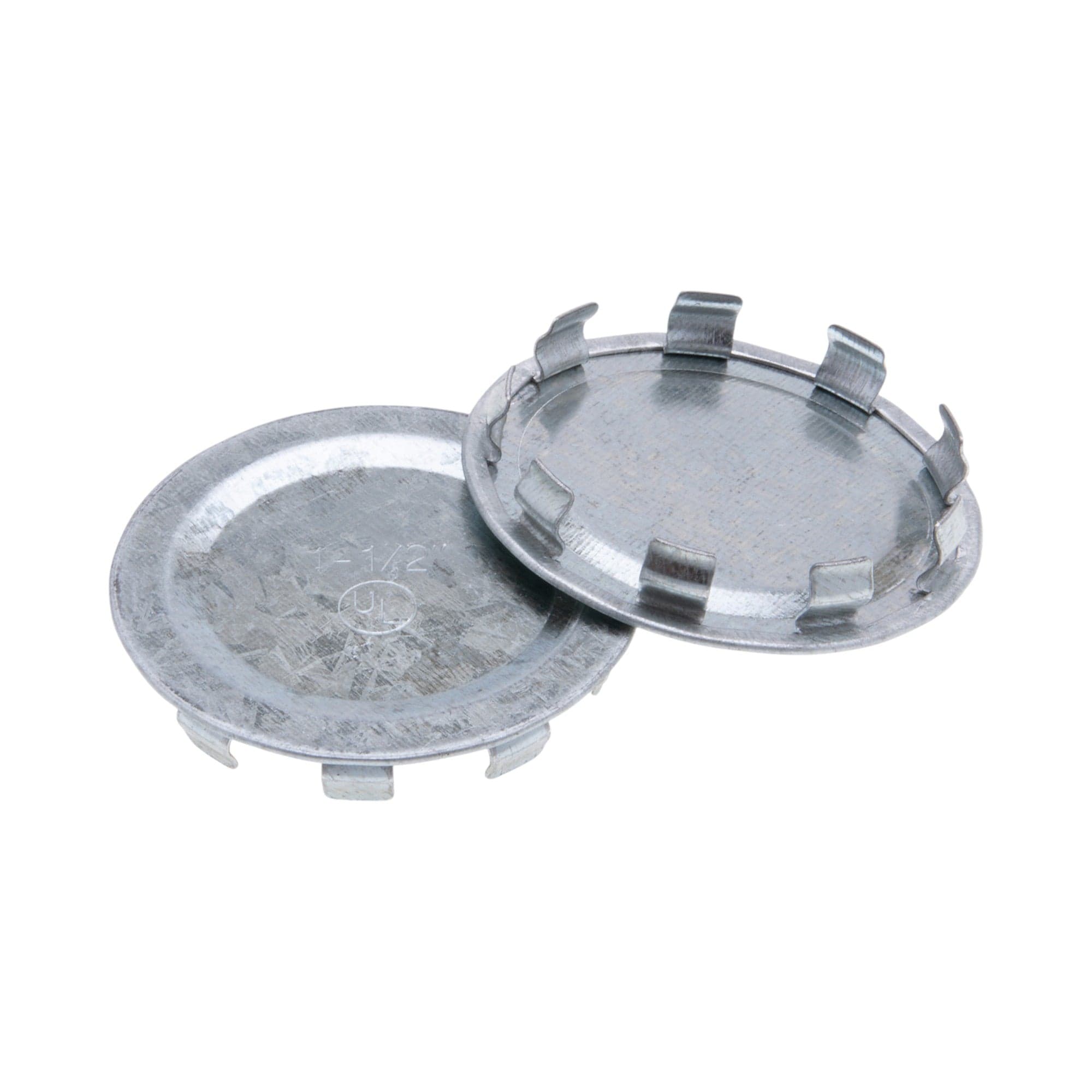 The Knock-out Seals 2", made from pre-galvanized steel, are designed to be used in electrical enclosures to close off unused knockout holes. Knockouts are pre-punched holes in electrical boxes that allow for the installation of conduit or wiring systems. When these holes are not in use, they must be sealed to prevent the ingress of dust, moisture, and debris, which can compromise the electrical system’s safety and functionality.