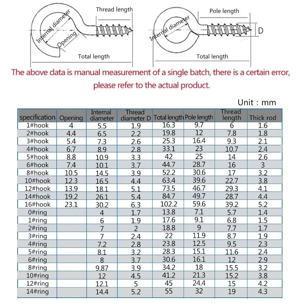 Self-tapping Hook Screw Large Heavy Duty Eye Hooks 30/20/10pcs Wood Sheep Eye Screws Large Hooking Bolt for Wood Securing Light
