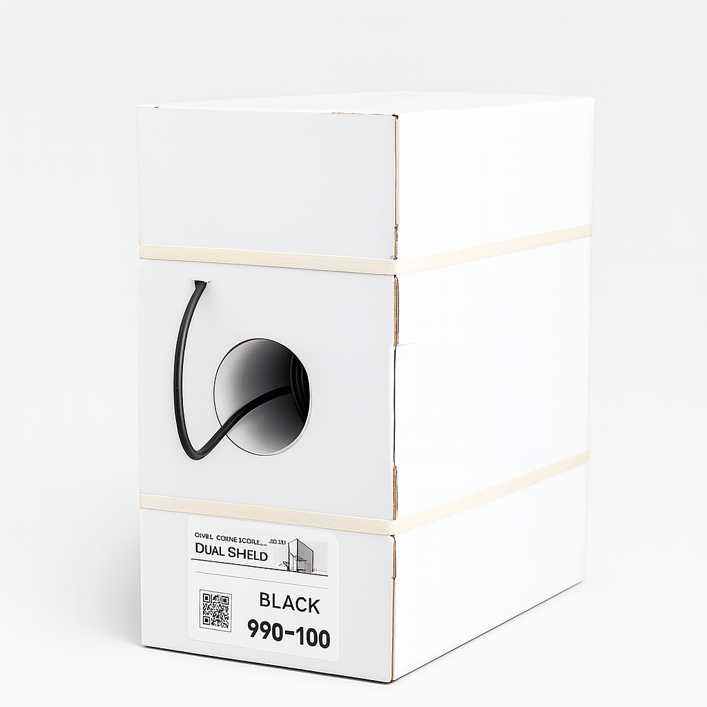RG6 Coaxial Cable — Dual Shield, 60% Braid (1000 ft Box, Black)
