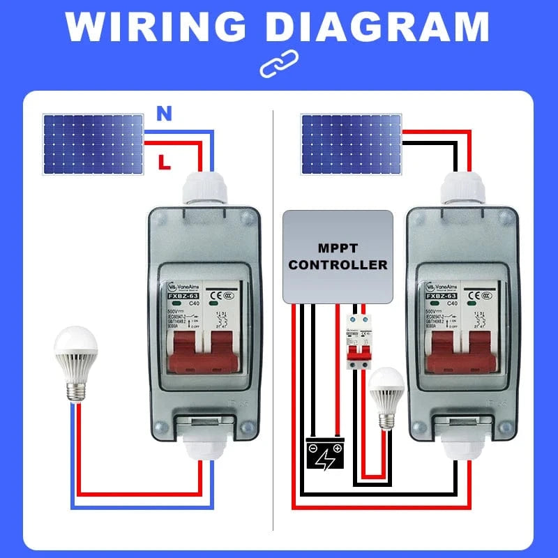 Solar Disconnect Switch Box MCB Mini Circuit Breaker DC500V PV Distribution Box IP65 Waterproof HT-2 Photovoltaic Combiner Box