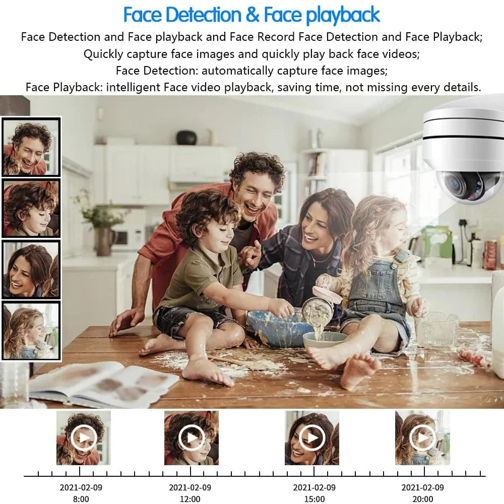 The camera flags face snapshots in streams so your DVR/VMS can quickly filter and play back events involving people.